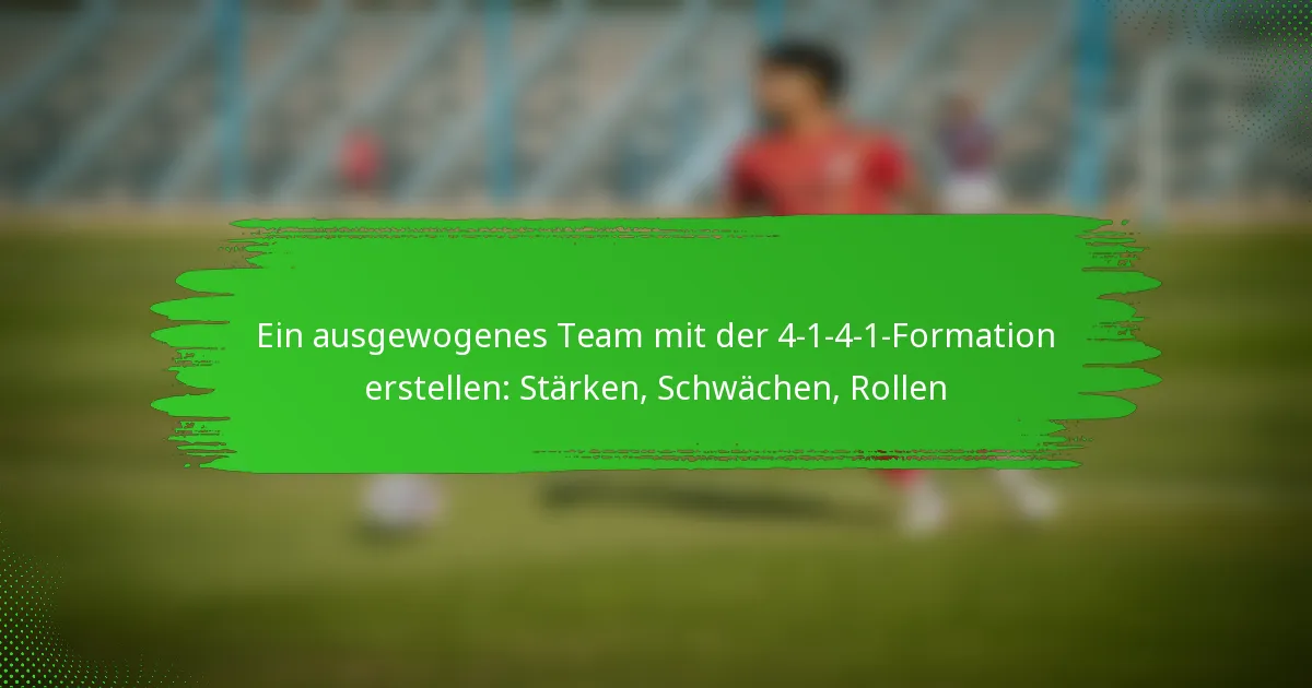 Die 4-1-4-1-Formation ist ein taktisches Setup im Fussball, das einen ausgewogenen Ansatz zwischen Verteidigung und Angriff betont und vier Verteidiger, einen defensiven Mittelfeldspieler, vier Mittelfeldspieler und einen Stürmer umfasst. Diese Formation bietet nicht nur eine solide defensive Struktur, sondern ermöglicht es den Teams auch, das Mittelfeldspiel zu dominieren und vielseitige Angriffsgelegenheiten zu schaffen. Sie hat jedoch auch gewisse Schwächen, wie die Anfälligkeit für Spiel über die Flügel und Herausforderungen gegen hochpressende Gegner, die die Gesamtleistung beeinträchtigen können.