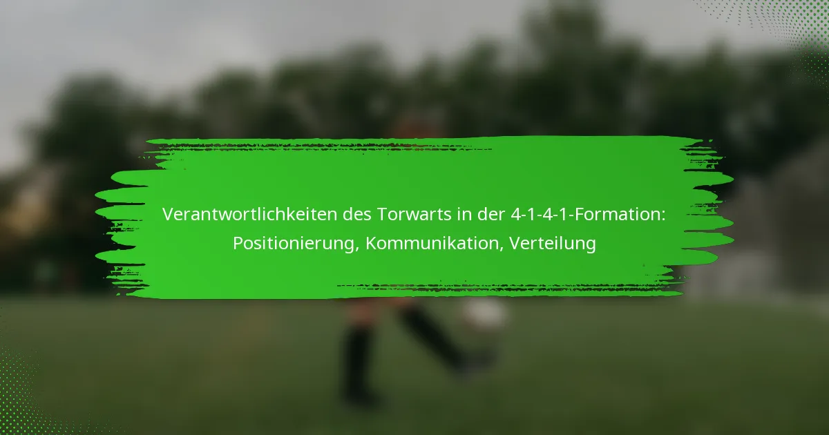 In einer 4-1-4-1-Formation spielt der Torhüter eine zentrale Rolle, die effektive Positionierung, klare Kommunikation und präzise Verteilung umfasst. Diese Verantwortlichkeiten sind entscheidend, um eine solide Abwehr zu gewährleisten und reibungslose Übergänge in den Angriff zu ermöglichen. Durch effektive Kommunikation mit den Mitspielern und den Einsatz strategischer Verteilungsmethoden hilft der Torhüter, die Teamstruktur aufrechtzuerhalten und die Gesamtleistung auf dem Feld zu verbessern.