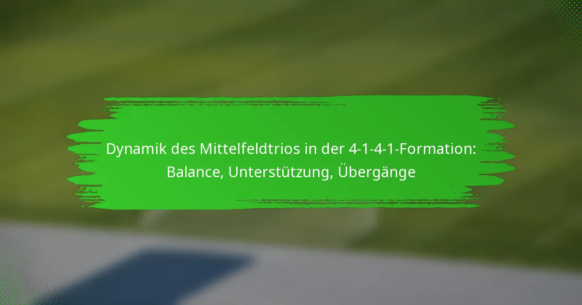 Die 4-1-4-1-Formation verfügt über ein dynamisches Mittelfeld-Trio, das entscheidend für das Gleichgewicht zwischen defensiven Aufgaben und der Unterstützung von Angriffsspielzügen ist. Jede Mittelfeldspieler-Rolle fördert effektive Übergänge und erhält die Kontrolle über das Spiel, was sowohl defensive Stabilität als auch offensive Fluidität gewährleistet. Diese Koordination ist entscheidend, um Chancen zu schaffen und die Teamstruktur in verschiedenen Phasen des Spiels aufrechtzuerhalten.