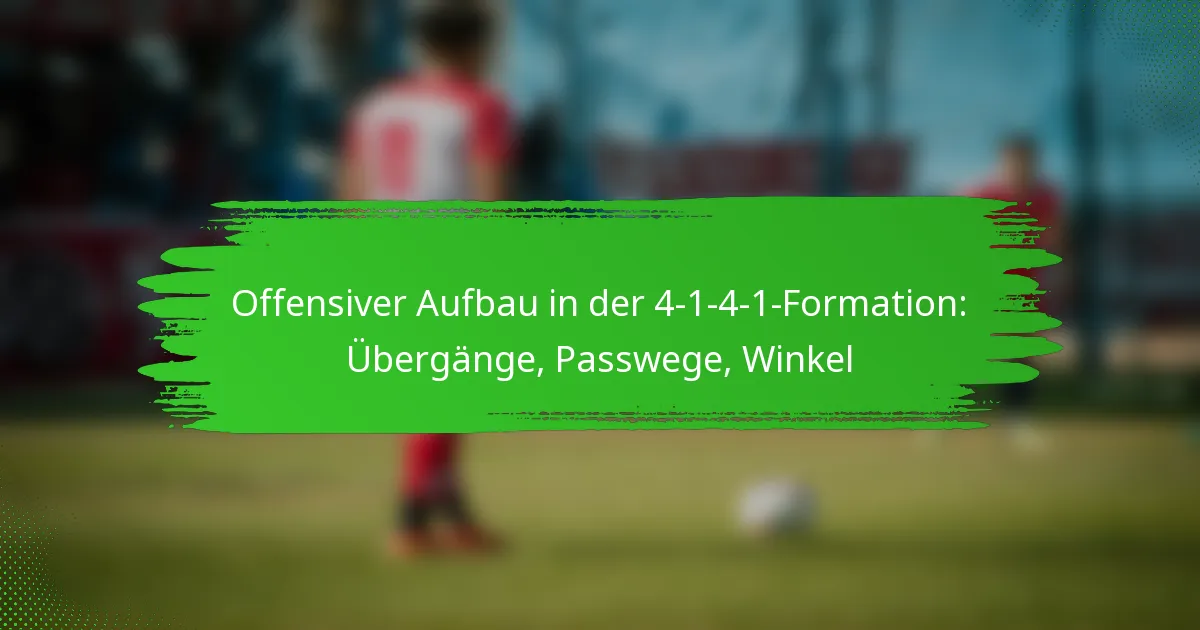 Die 4-1-4-1-Formation ist ein taktisches Setup im Fussball, das defensive Solidität mit einer dynamischen Präsenz im Mittelfeld kombiniert und es den Teams ermöglicht, effektiv zwischen Offensive und Defensive zu wechseln. Um den offensiven Aufbau zu maximieren, müssen die Teams sich auf strategische Positionierung, schnelle Übergänge und die Schaffung von Passwegen und -winkeln konzentrieren, die defensive Schwächen ausnutzen. Durch die Nutzung dieser Elemente können die Spieler ihre Fähigkeit verbessern, den Ballbesitz zu halten und Tormöglichkeiten zu generieren.