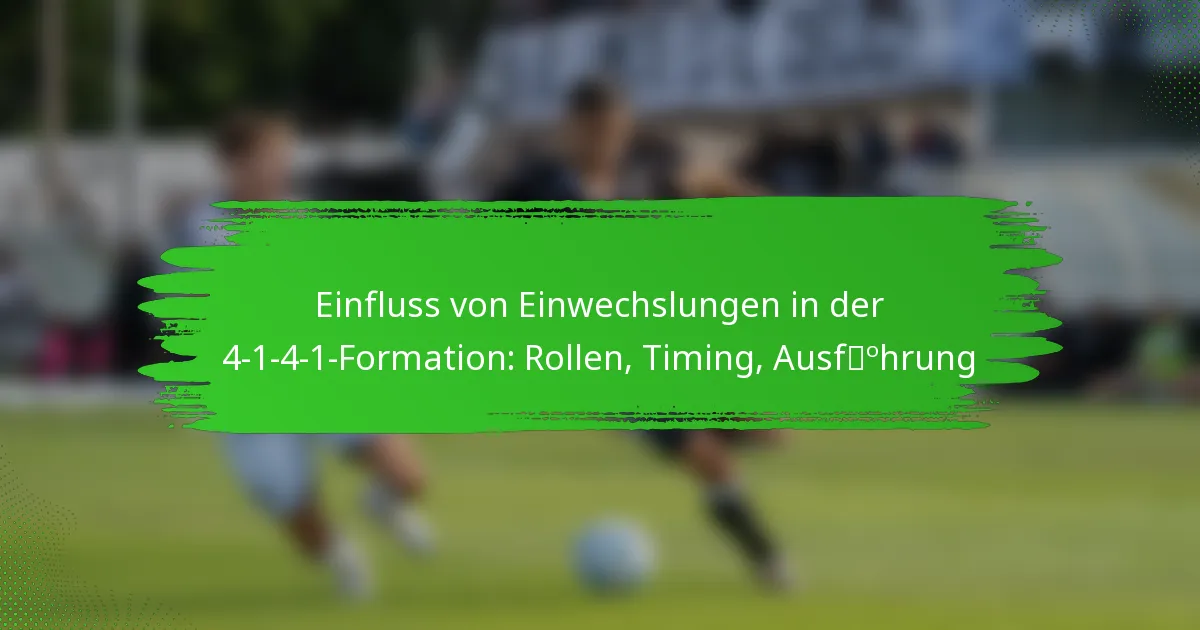 Wechselspieler in einer 4-1-4-1-Formation sind entscheidend, um die Dynamik eines Spiels zu verändern, da ihre Rollen den Fokus zwischen Verteidigung, Mittelfeldkontrolle und Angriff verschieben können. Das Timing dieser Wechsel ist entscheidend; frühe Änderungen können Energie und taktische Anpassungen einbringen, während späte Anpassungen die Teamkohäsion stören können. Der erfolgreiche Einsatz hängt von einer sorgfältigen Planung vor dem Spiel und der Anpassungsfähigkeit in Echtzeit ab, was die Leistung und Reaktionsfähigkeit eines Teams während des Spiels erheblich verbessern kann.